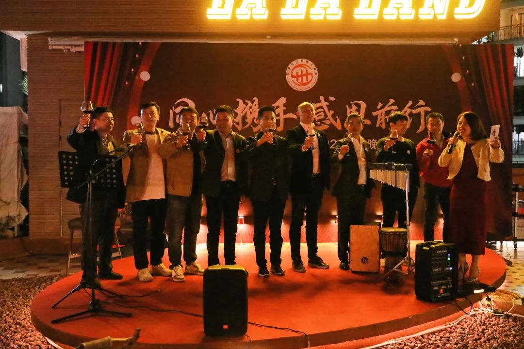 会长顾长飞、监事长聂国龙、常务副会长李国春、曾应平、朱建明、吴求军、胡军辉、曾金保、李志军、余景龙等会长们上台祝酒,共同举杯庆祝这一难忘时刻。
