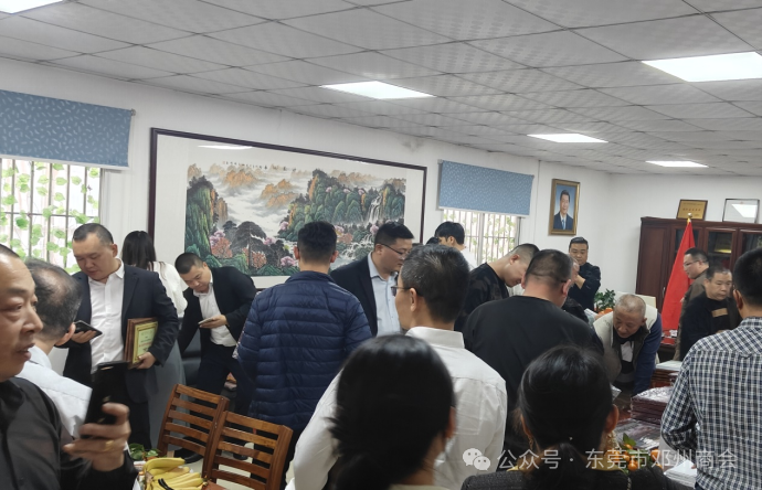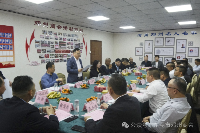 邓州市工商联秘书长郭彬应邀前来东莞市邓州市商会指导工作,与商会企业家打们成一片。商会名誉会长朱占立一直关心着商会的发展。