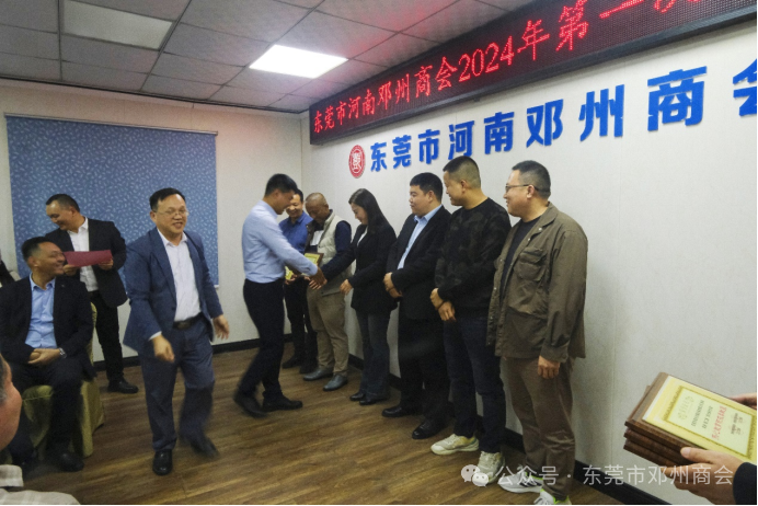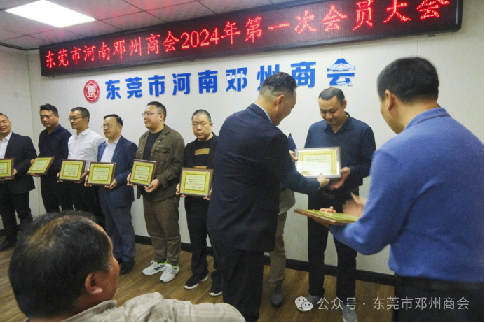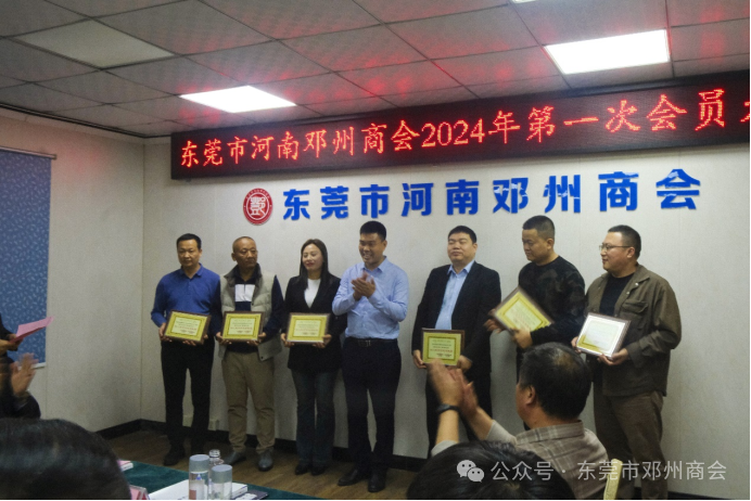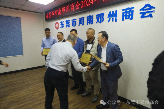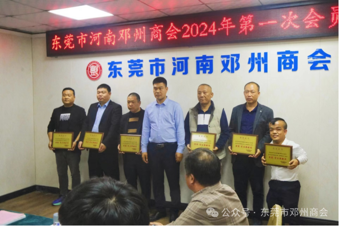 东莞市邓州商会名誉会长朱占立,向东莞市邓州商会第三届理事会中起到中流砥柱作用的孙志鸿、朱占涛、李玉青、刘胜杰、王朝龙等发放“特别贡献奖”。商会正是有了他们的无私付出,才会呈现出积极活跃的状态。