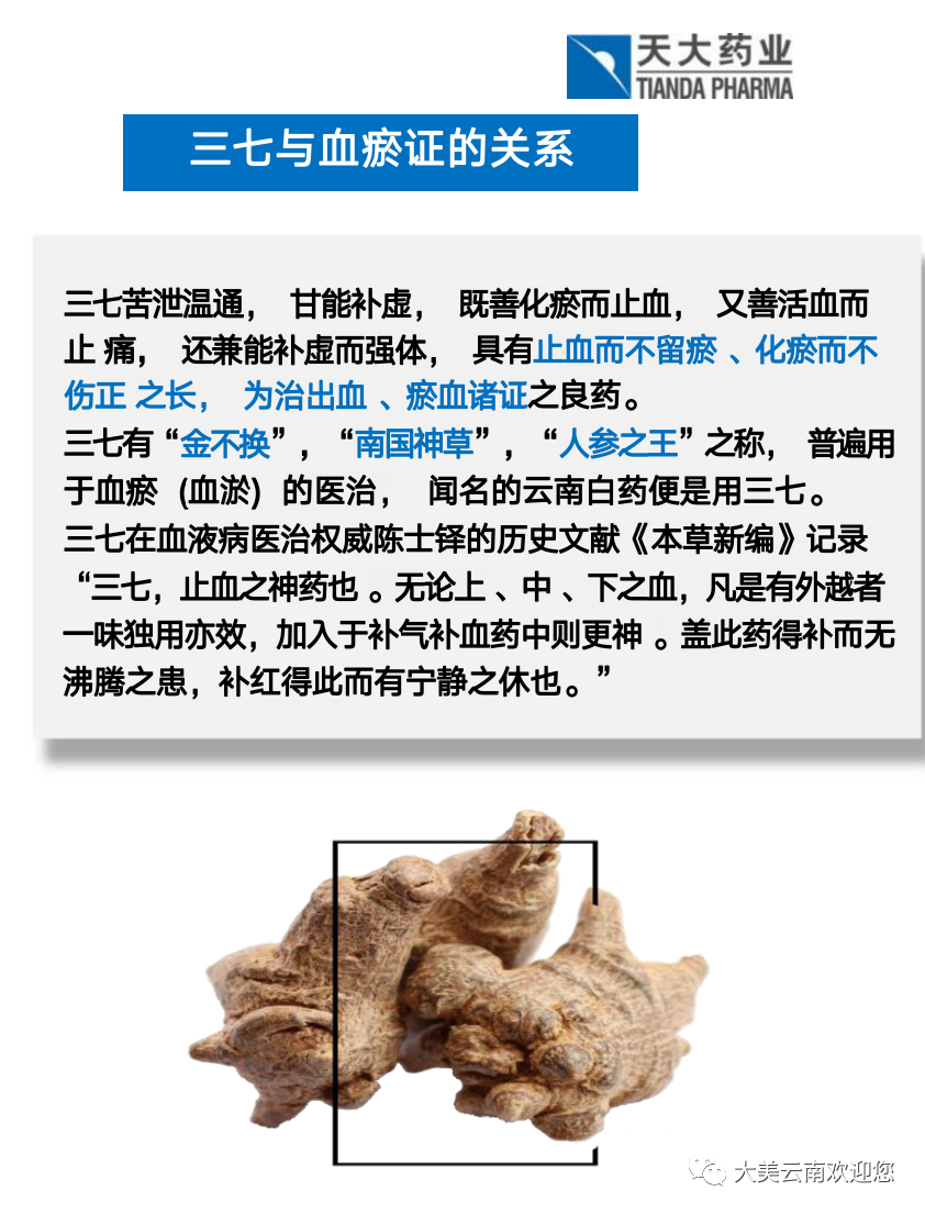 现代医学称三七成为:天然的阿司匹林,抗血小板聚集能力,优于 阿司匹林。