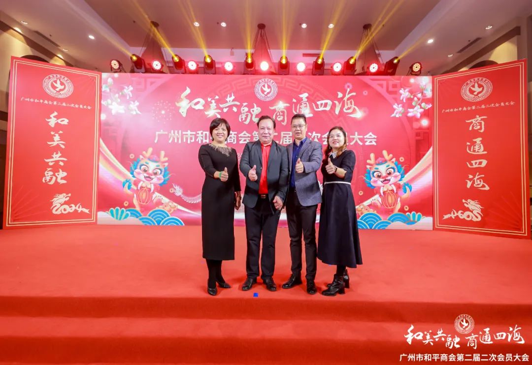 1月13日,广州市和平商会举行第二届二次会员大会庆典活动,我会会长谢惠乾,常务副会长杨素美,副会长兼秘书长曾小花应邀参加此次活动。