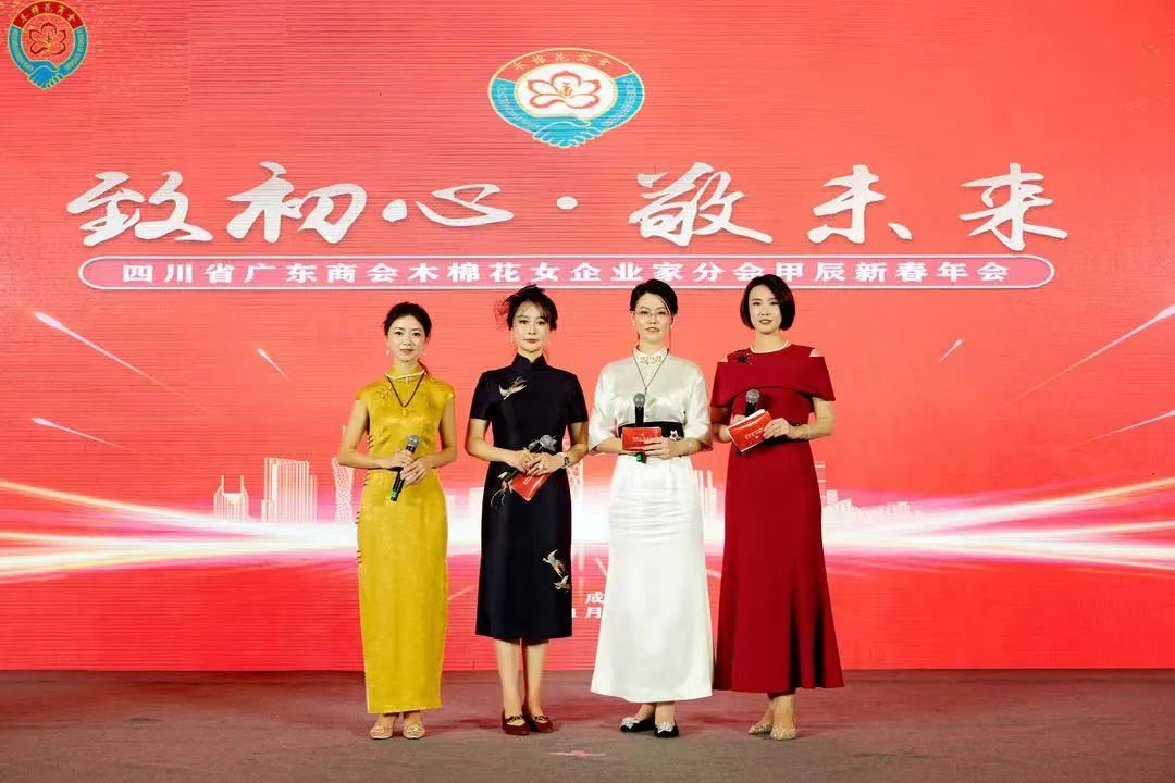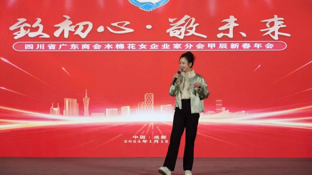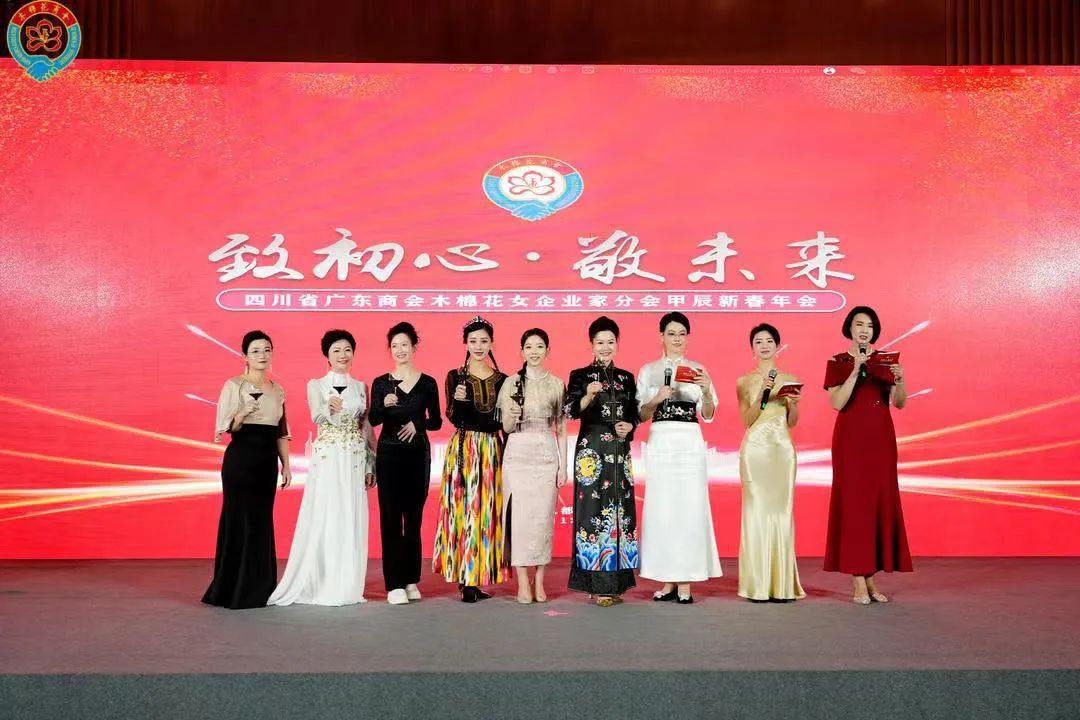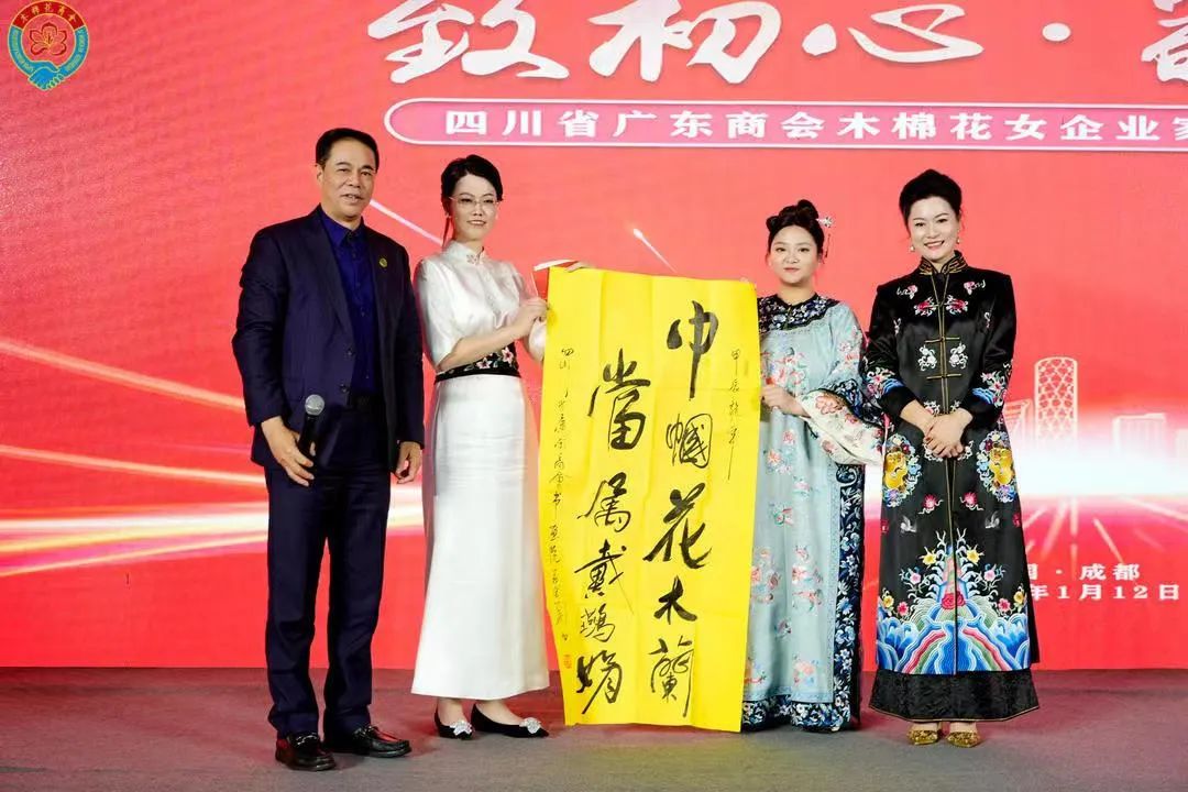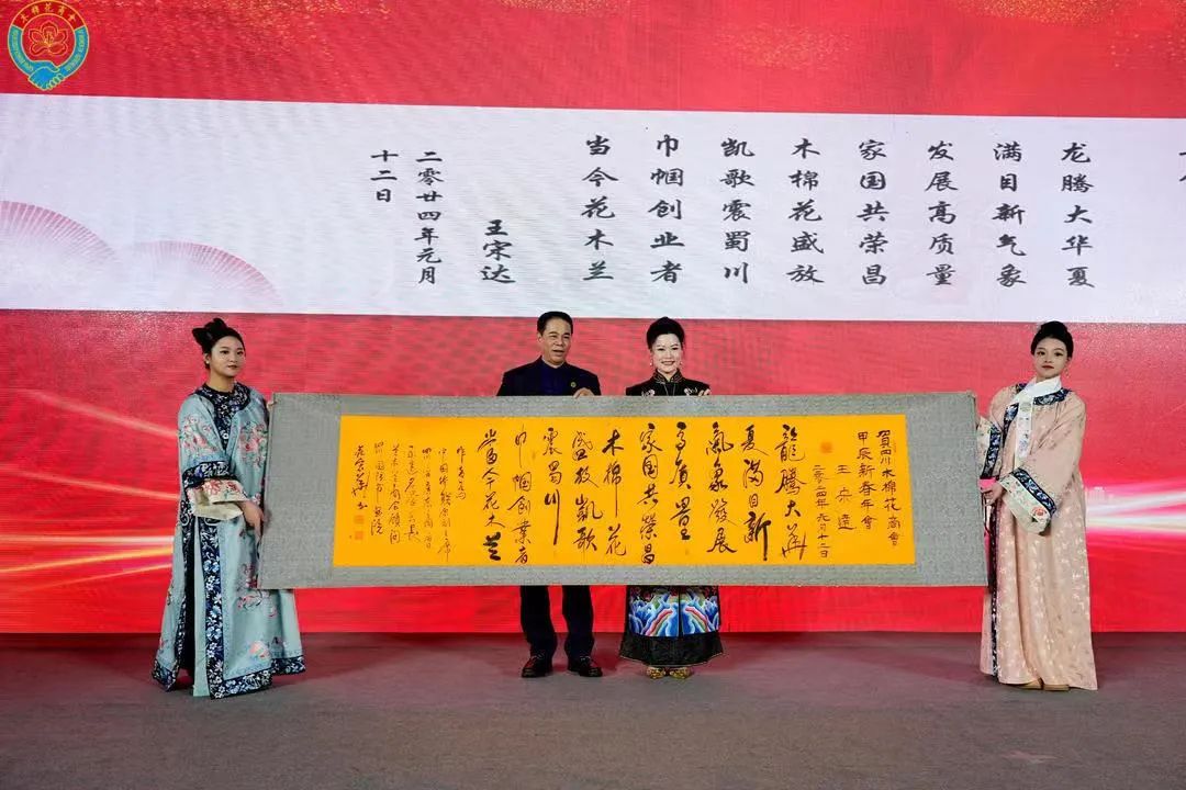 四川省广东商会永远名誉会长、中国侨联原副主席王宋达一直给予我会殷切关心和热情指导,不仅为木棉花分会谱写了会歌《赞女粤商》,还专门为本次新春年会创作了一首诗——《贺四川木棉花商会甲辰新春年会》: