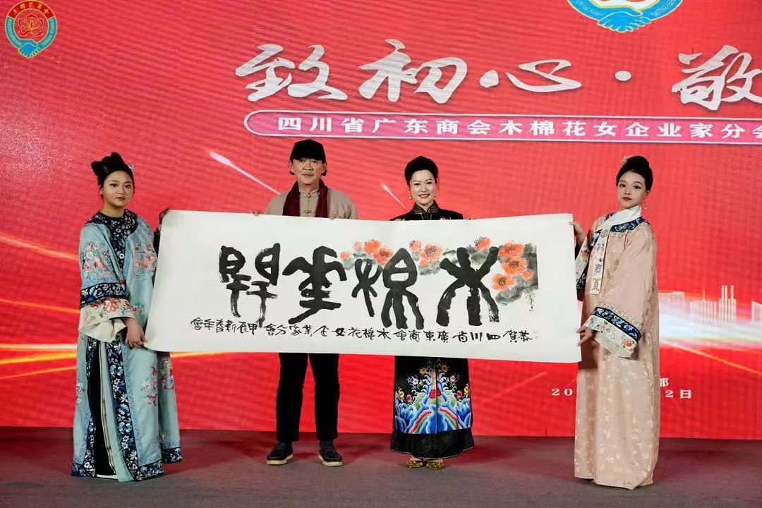 四川中国画研究院执行院长汪晓灵为木棉花女企业家分会赠送书画作品《木棉花开》。