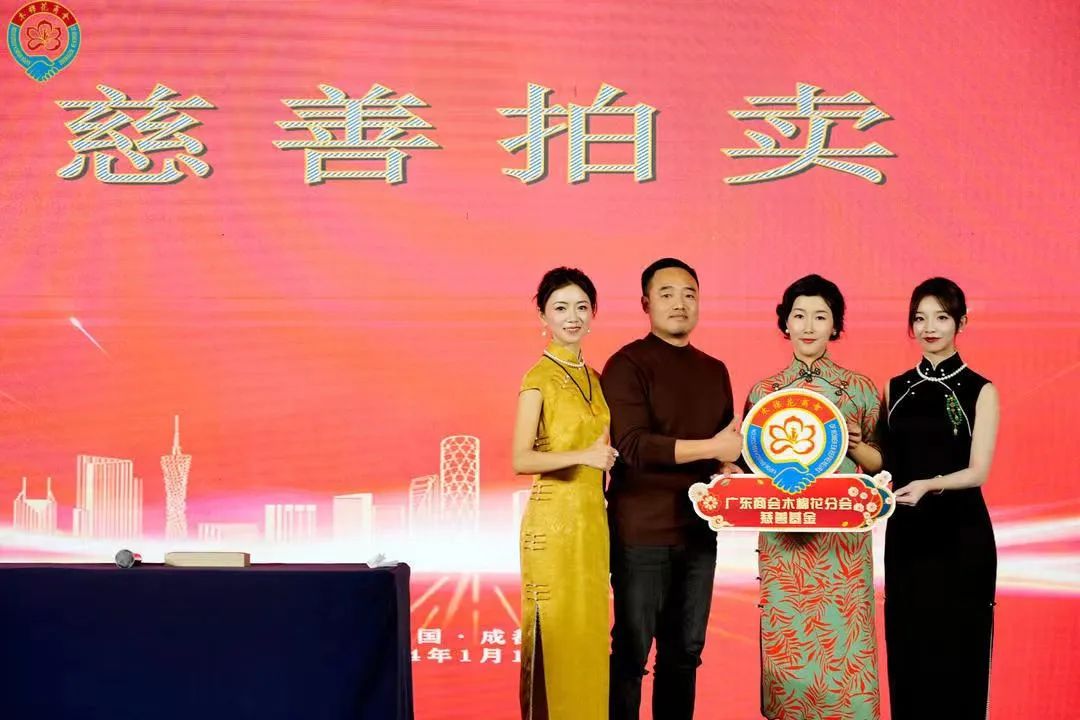 本次年会还特别安排了慈善拍卖环节,由顾问黄俐和百年聚公益基金会负责人/木棉花常务副会长许晓蕾主持。拍品都是由分会会员以及嘉宾们自发捐赠,拍卖所得将全部汇入四川省广东商会慈善基金会。过程中,嘉宾积极竞拍,争相为慈善事业贡献力量。在这个美好的夜晚,艺术与慈善交相辉映,大家共同见证了爱心的传递。