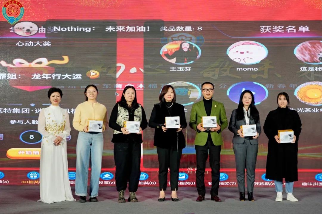 本场晚会还安排了抽奖环节,穿插晚宴的三轮抽奖一次次激发着嘉宾的热情,中奖的幸运嘉宾洋溢着灿烂的笑容上台领取奖品,未中奖的嘉宾也期待分享本次晚会的幸运和喜悦。