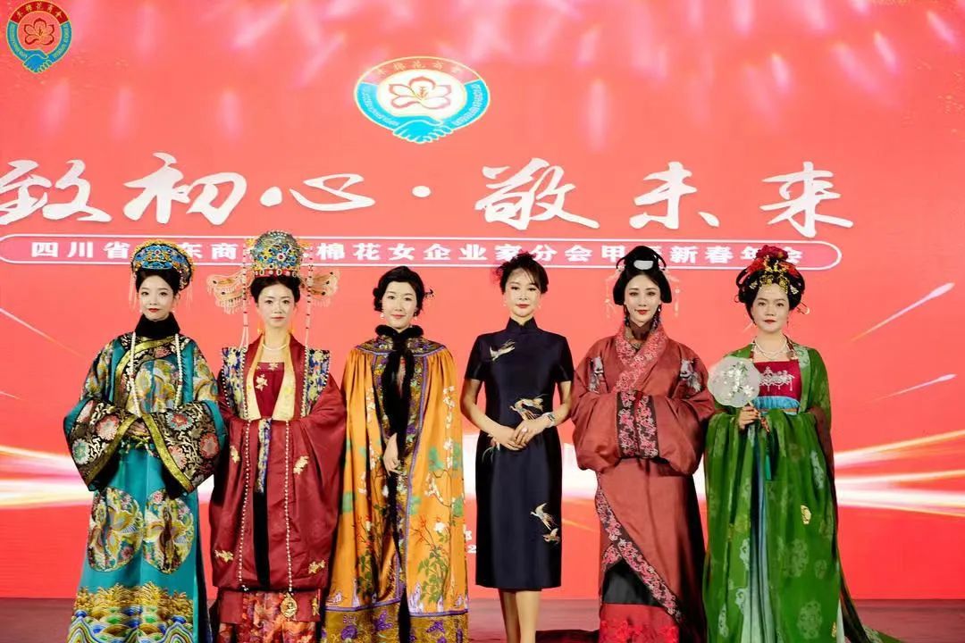 时光如梭,岁月如歌,在车轮滚滚中,在繁花似锦中,绽放出春的色彩!1月12日,四川省广东商会木棉花女企业家分会2024“致初心,敬未来”新年联谊会在龙泉驿东安阁酒店宴会厅圆满举行。四川省政协原副主席罗布江村、广东省驻成都办事处原主任吴东、广东省驻成都办事处原主任曾华杰、四川省社会主义学院一级调研员/四川统一战线同心书画院秘书长张正、四川省广东商会书画院院长、云南怒江军分区原司令员庄宏华、广安军分区原司令员张庆祝、射洪市副市长敬筠、四川省广东商会名誉会长、四川省潮人海外联谊会会长陈湖南、潮汕商会会长余鹤鸣等嘉宾应邀出席本次盛会。四川省广东商会会长林少奋以及商会会长们、木棉花女企业家分会会长戴燕娟、顾问杨刚贤、黄俐、连燕霞,常务副会长、副会长、理事、会员与嘉宾齐聚一堂。