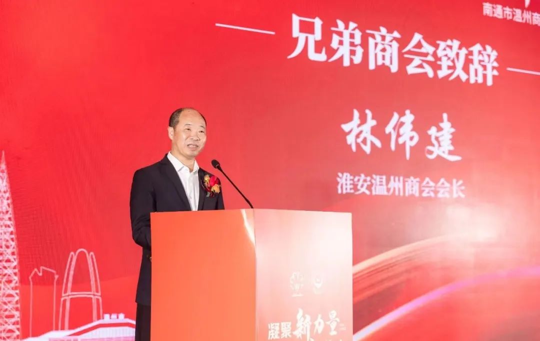 大会上,淮安温州商会会长林伟建代表兄弟商会进行致辞。林会长表示,