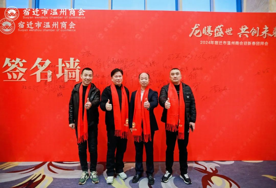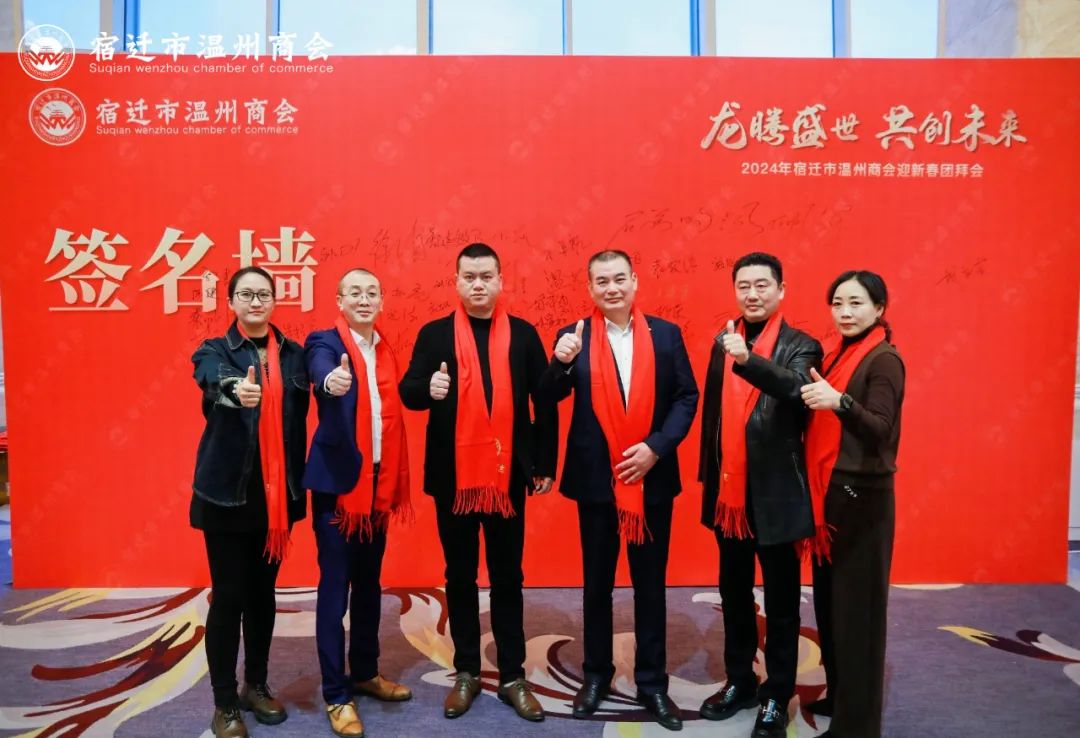 1月15日,淮安市温州商会会长林伟建、监事长郑建敏、常务副会长兼执行秘书长郑贤龙、常务副会长王锦锁、林良志、党支部书记李泳涛一行9人,参加了宿迁市温州商会“龙腾盛世,共创未来”迎新春团拜会。
