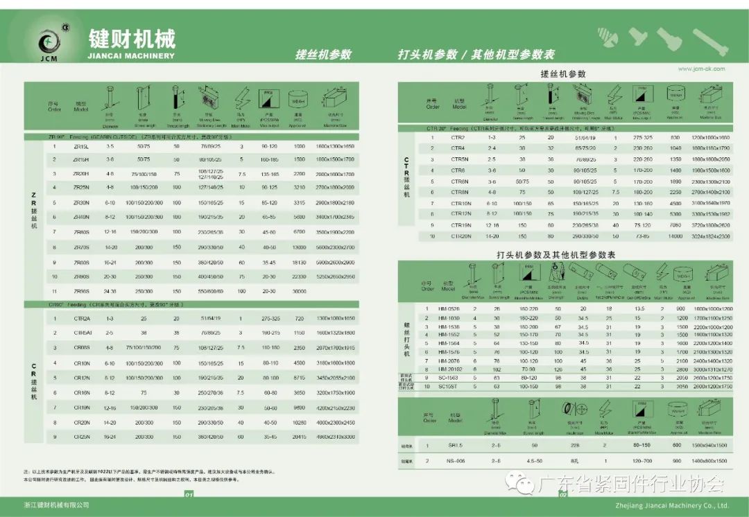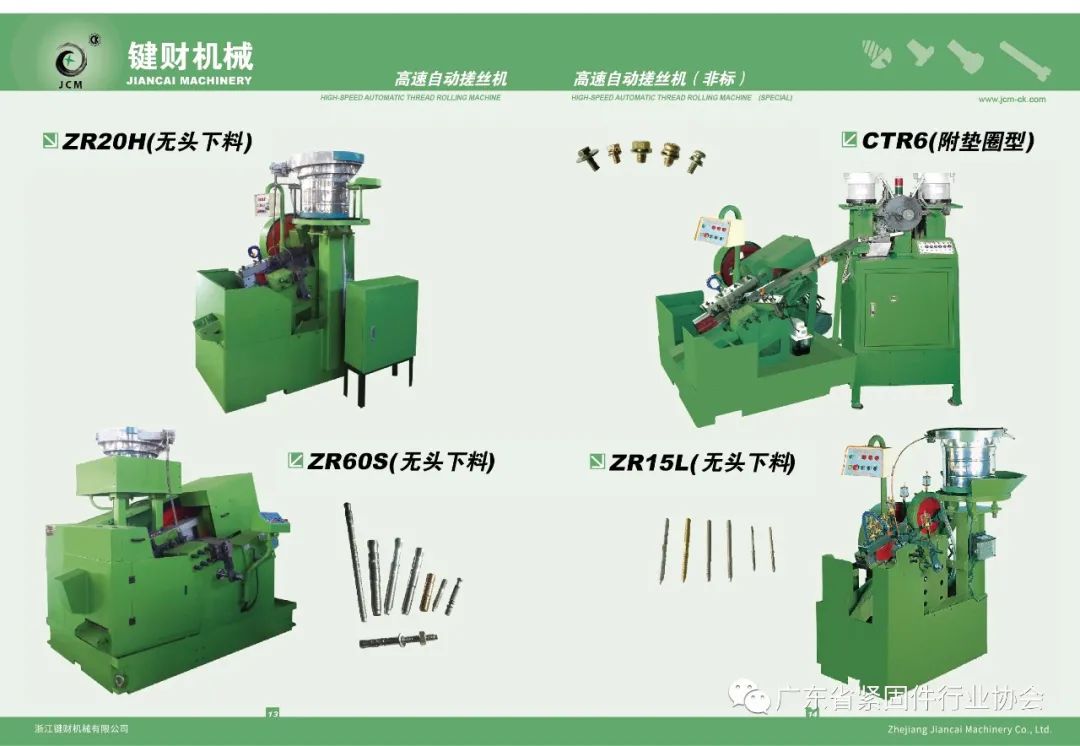 浙江键财机械有限公司是由陈建财先生于1973年创立于台北,是台湾较早研制和生产搓牙机及相关设备的公司,也是台湾较早拥有搓牙机独立研发团队的公司之一。公司设备可制螺纹外径从1mm至38mm,甚至可制螺纹长度达600mm,在该领域拥有自己独到的技术与经验。产品远销大陆及日本、欧美等世界多地。自创立至今,键财品牌已深入人心。