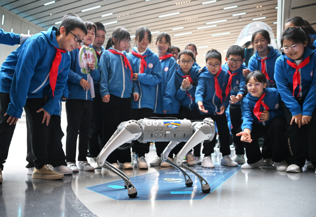 ▲2023成都世界科幻大会主题展上,小朋友与科技装置互动