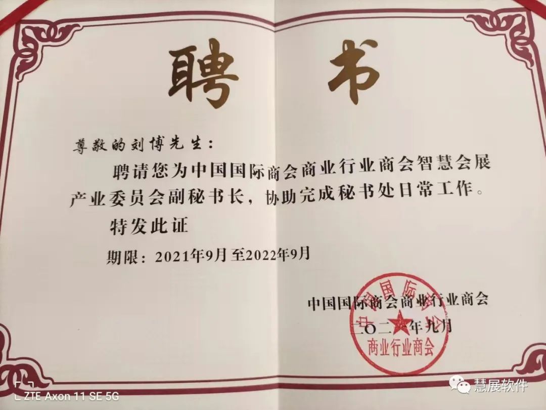 9月5日,2021年中国国际服务贸易交易会—第五届中国服务贸易标准化论坛在京举行。论坛期间,由中国国际商会商业行业商会牵头发起的智慧会展产业委员会正式成立,慧展软件入选为理事单位参与仪式并获颁证书。