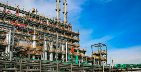 ▲伊吾工业园区内,新疆众友浦汇科技有限公司煤基甲基丙烯酸甲酯生产装置外景。