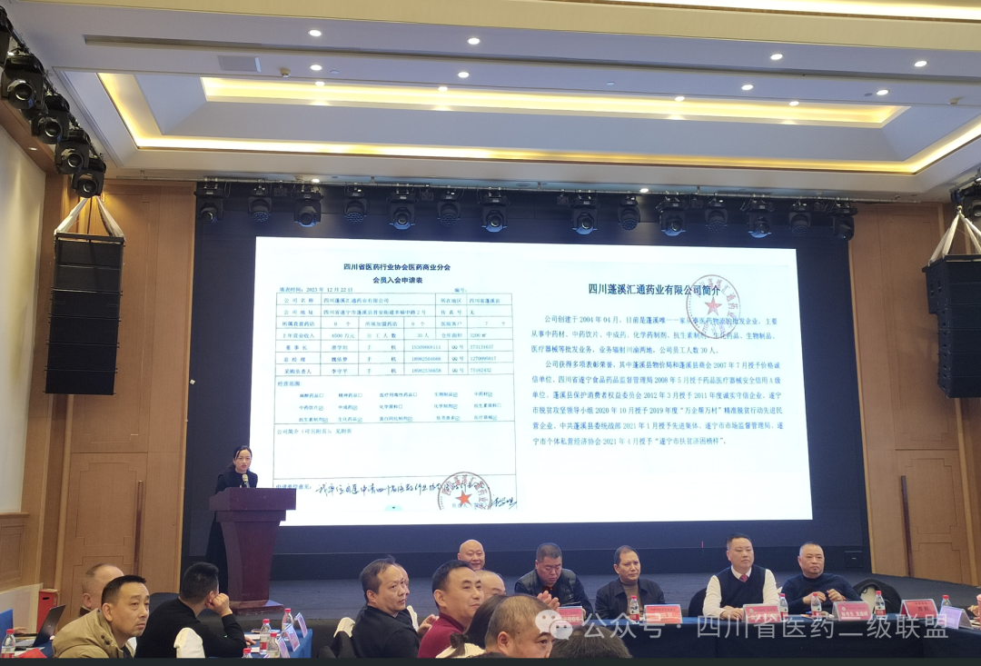 四、副秘书长何云燕组织讨论通过新会员四川诚济医药有限公司、四川蓬溪汇通药业有限公司加入了分会大家庭。