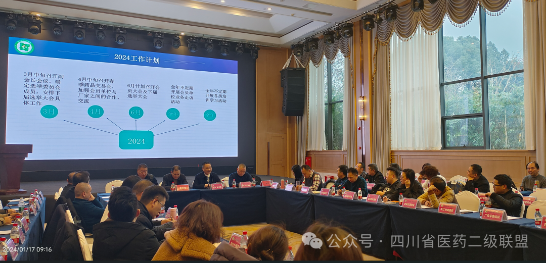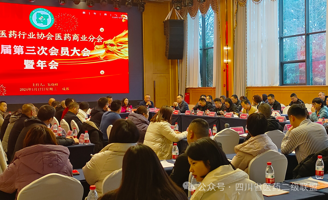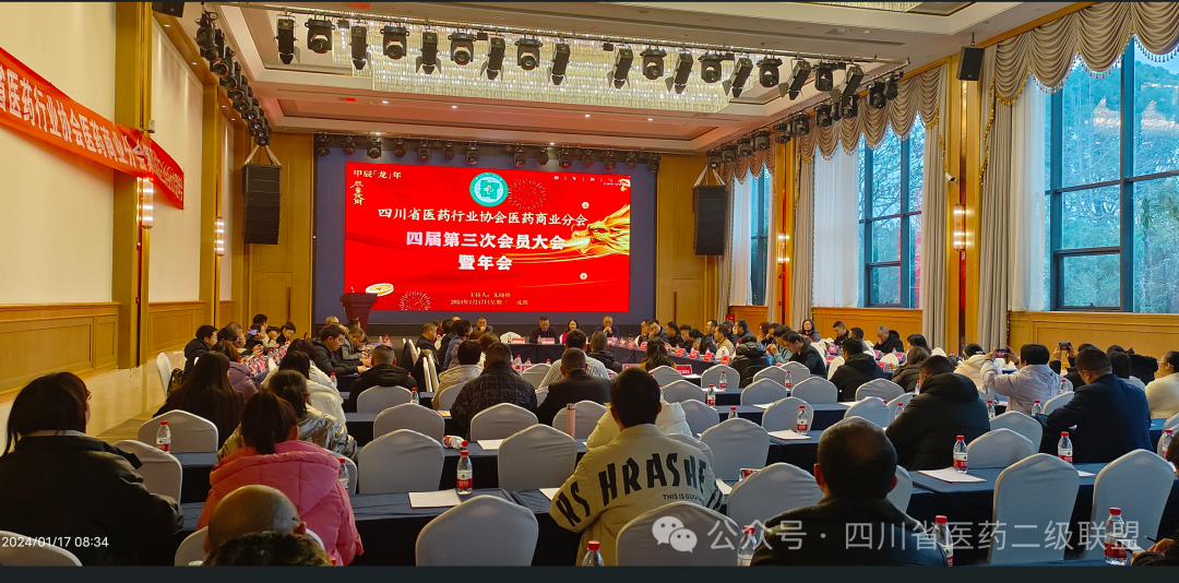 2024年1月17日上午8时30分,四川省医药行业协会医药商业分会第四届第三次会员大会暨年会在成都市林道假日酒店召开。