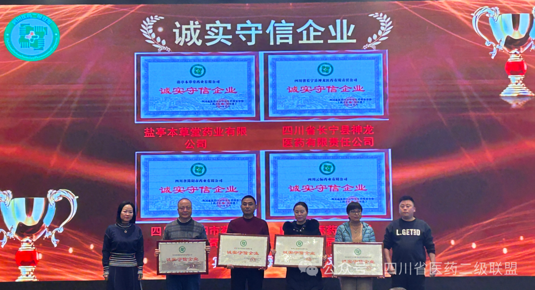 4、2023年度诚实守信企业:盐亭本草堂药业有限公司、四川省长宁县神龙医药有限责任公司、四川省简阳市药业有限公司、四川云际药业有限公司。