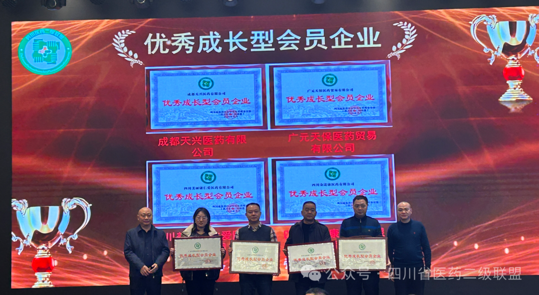 6、2023年度优秀成长型会员企业:成都天兴医药有限公司、广元天保医药贸易有限公司、四川金道康医药有限公司、四川美丽康仁爱医药有限公司。