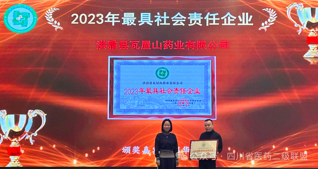5、2023年度最具社会责任企业:洪雅县瓦屋山药业有限公司。