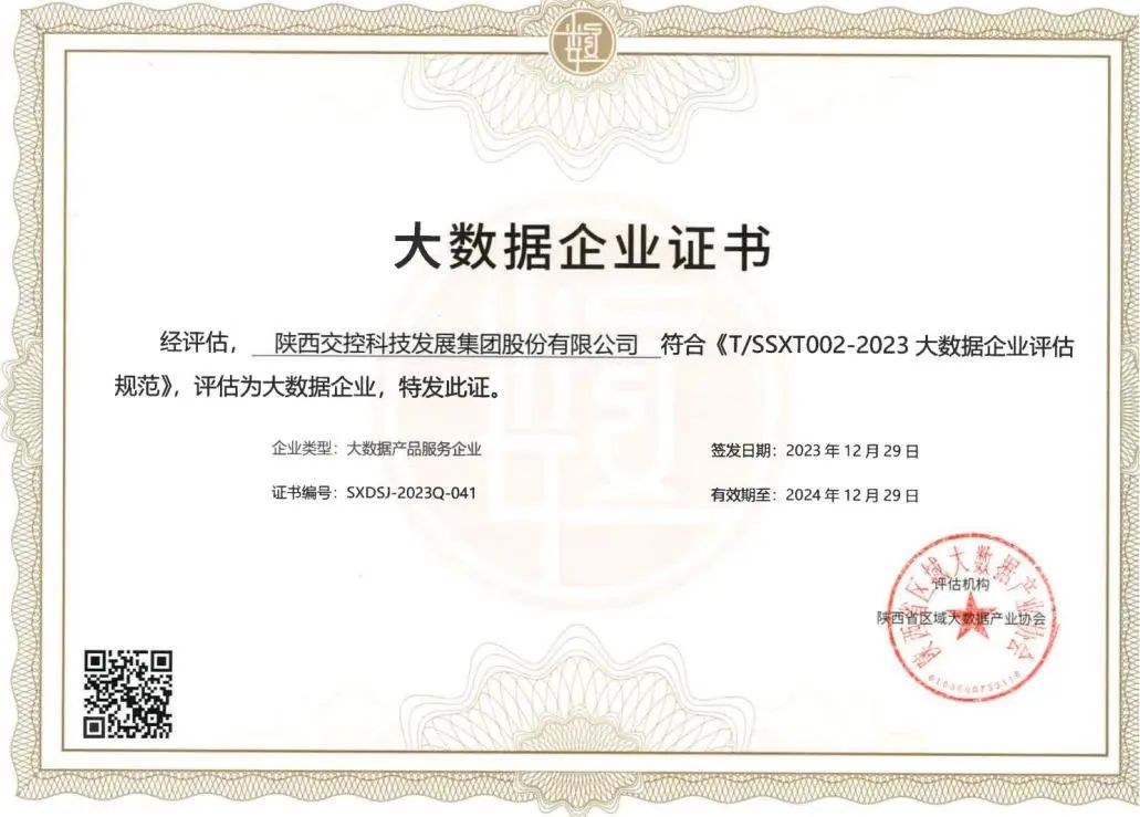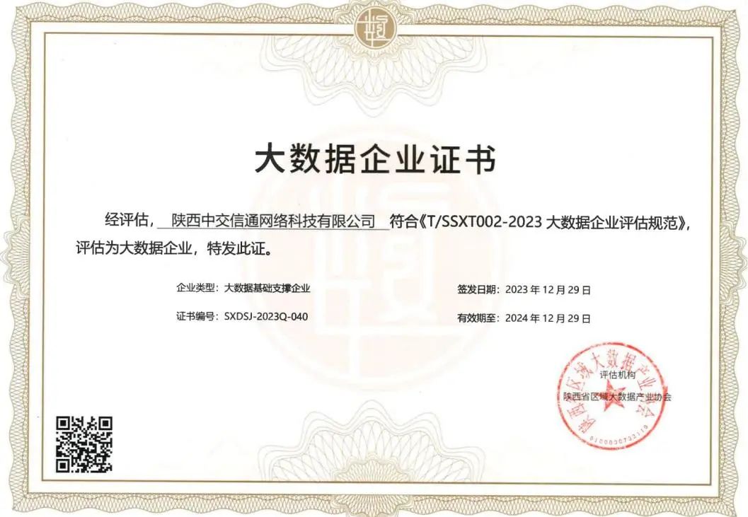 荣获陕西省“大数据企业”认证