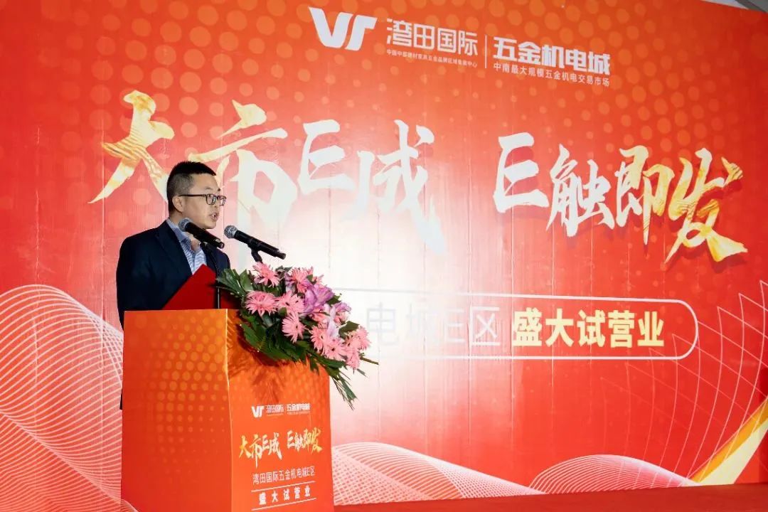 湾田国际商管公司总经理沈阳先生致辞表示:湾田国际作为湾田集团旗下标杆项目,一步步的从批发总源头到品牌区域集散中心并向着建材家居五金产业小镇的方向前进着,我们始终践行做运营的初心,自建仓储,搭建全省物流,为商户经营打好基础,组织活动,拓展资源,组建联盟,为商户的生意保驾护航,五金E区作为大二期的开篇之作,市场也将高度关注和支持,加速400亩智慧供应链用地的开发和建设,且随着香泸州大桥、地铁一号线延长线、驼峰桥等项目的加速推进,必然会让商户的生意朝着更好的方向前进。