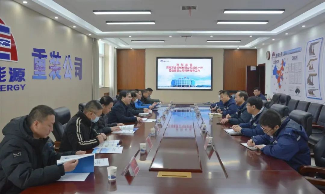 1月16日,河南万合机械有限公司党委书记、董事长刘国斌一行到公司参观交流。公司党委书记、董事长卫广炎热情接待。公司党委副书记、工会主席武付军,总经理助理叶进、副总工程师郭宝玉及相关单位负责人参加座谈会。