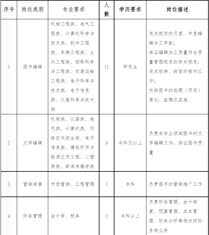 机械工业出版社有限公司招聘启事
