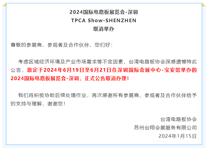 【通知】国内知名PCB展会取消!