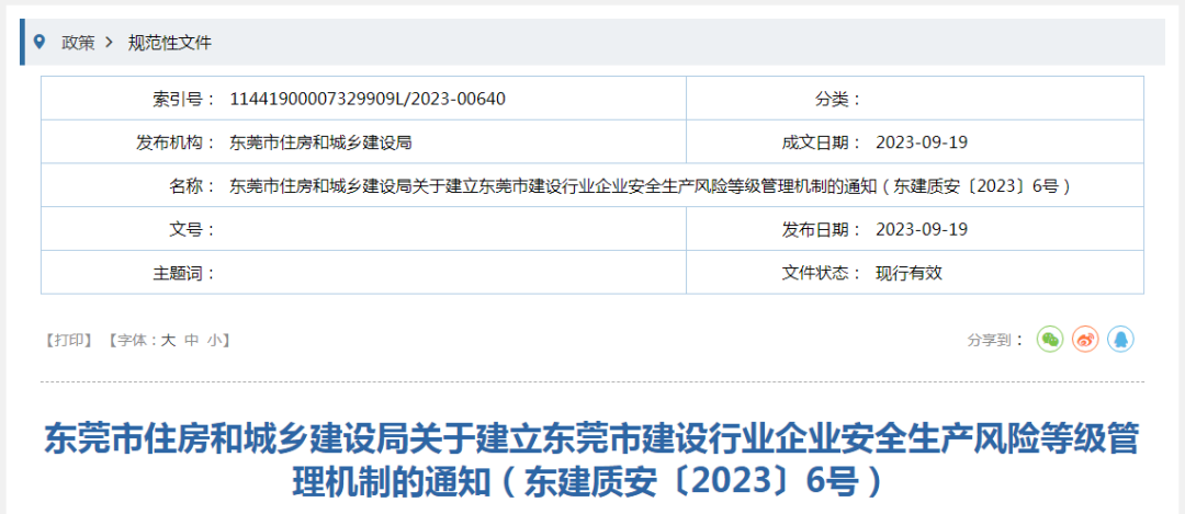 关于建立东莞市建设行业企业安全生产风险等级管理机制的通知