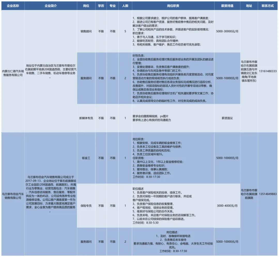 2024年乌兰察布市服务重点行业企业岗位推送活动(十一)