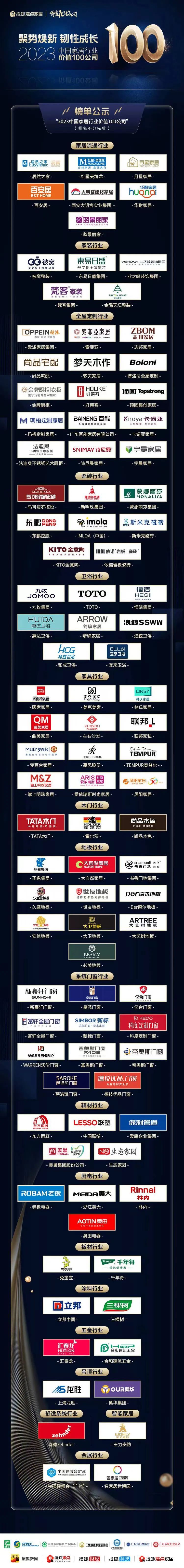 于此,以“聚势焕新 韧性成长”为主题,“2023中国家居行业价值100公司”隆重启动,项目由搜狐集团发起,搜狐焦点家居主办,面对中国家居行业,遴选优秀品牌企业!