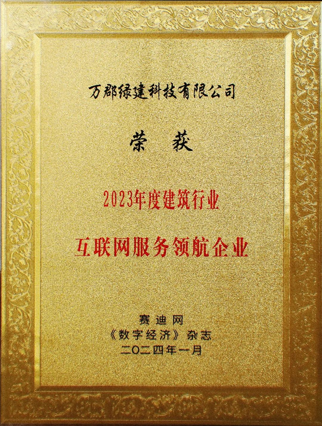 万郡绿建荣获“2023年度建筑行业互联网服务领航企业”奖项