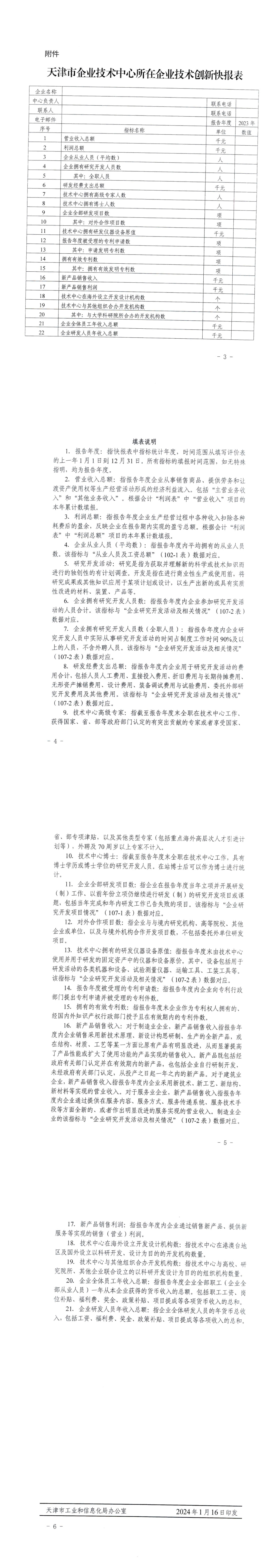为加强对企业技术创新情况监测,及时了解和掌握技术中心的工作动态,根据《天津市企业技术中心认定管理办法》(津工信规〔2021〕1号),天津市企业技术中心(含国家企业技术中心)需完成2023年度技术创新情况快报填报工作。现将有关事项通知如下:
