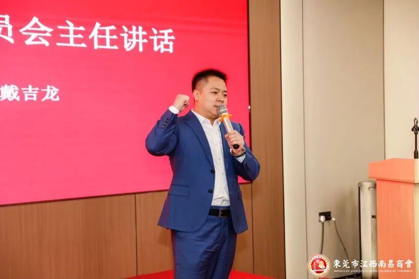 青年企业家委员会主任戴吉龙在授旗结束后,向大会发表就职感言。戴吉龙主任表示,首先感谢在座的人员能够到场见证青年企业家委员会的成立。其次感谢青年企业家委员会的架构成员们的积极参与和耐心付出,希望青年企业家委员会的各位成员能够在其位谋其职,既然选择了承担青年企业家委员会的相应职责,就一定要拿出年轻人的朝气与干劲,做出好的成绩。再来要感谢所有支持青年企业家委员会的会员和乡贤,因为有他们的支持,青年企业家委员会才能够在此成立,也因为有他们的鼓励,戴吉龙主任相信青年企业家委员一定能够做得更好更强!最后,也祝东莞市江西南昌商会能够成为繁荣昌盛的百年商会,也祝在座的会员们在新的一年里事业兴旺发达。