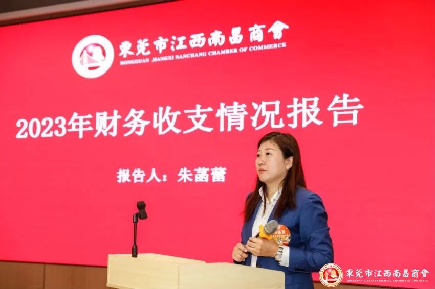 会议第三项:由监事长朱菡蕾代表监事会向大会作东莞市江西南昌商会2023年财务收支审议报告。