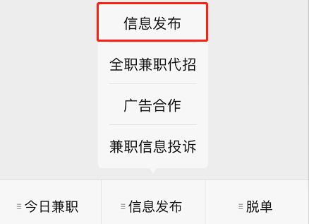 商家或领队需要发布兼职或全职信息,可在公众号菜单栏点击信息发布。我们会有专人处理。