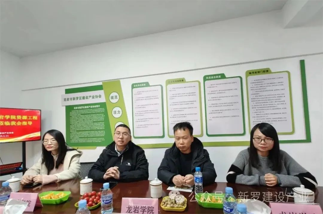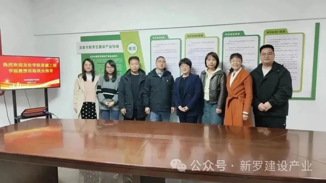1月11日下午,龙岩市学院资源工程学院兰国冠副教授、许华南博士、张克博士及黄清云老师一行四人莅临新罗区建设产业协会走访调研。