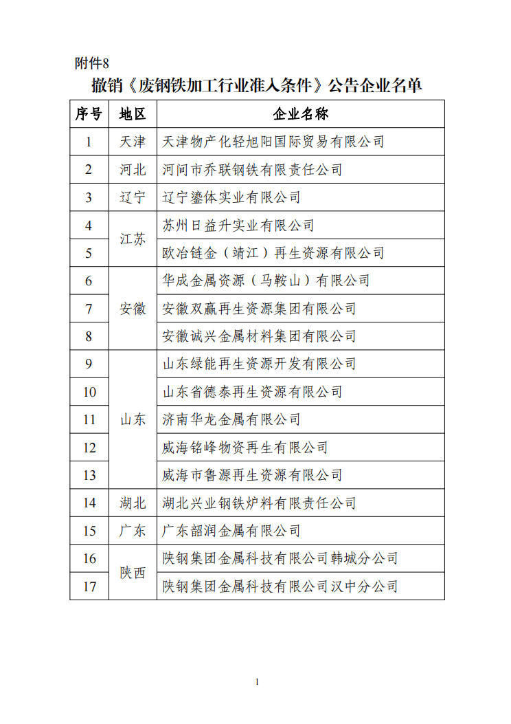 8撤销《废钢铁加工行业准入条件》公告企业名单