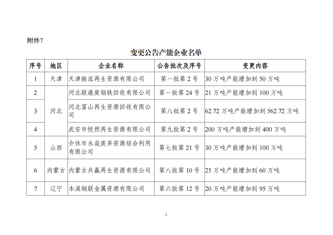 7变更公告产能企业名单