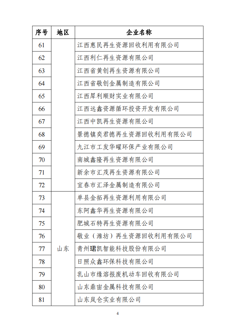 4符合《废旧轮胎综合利用行业规范条件》企业名单(第四批)