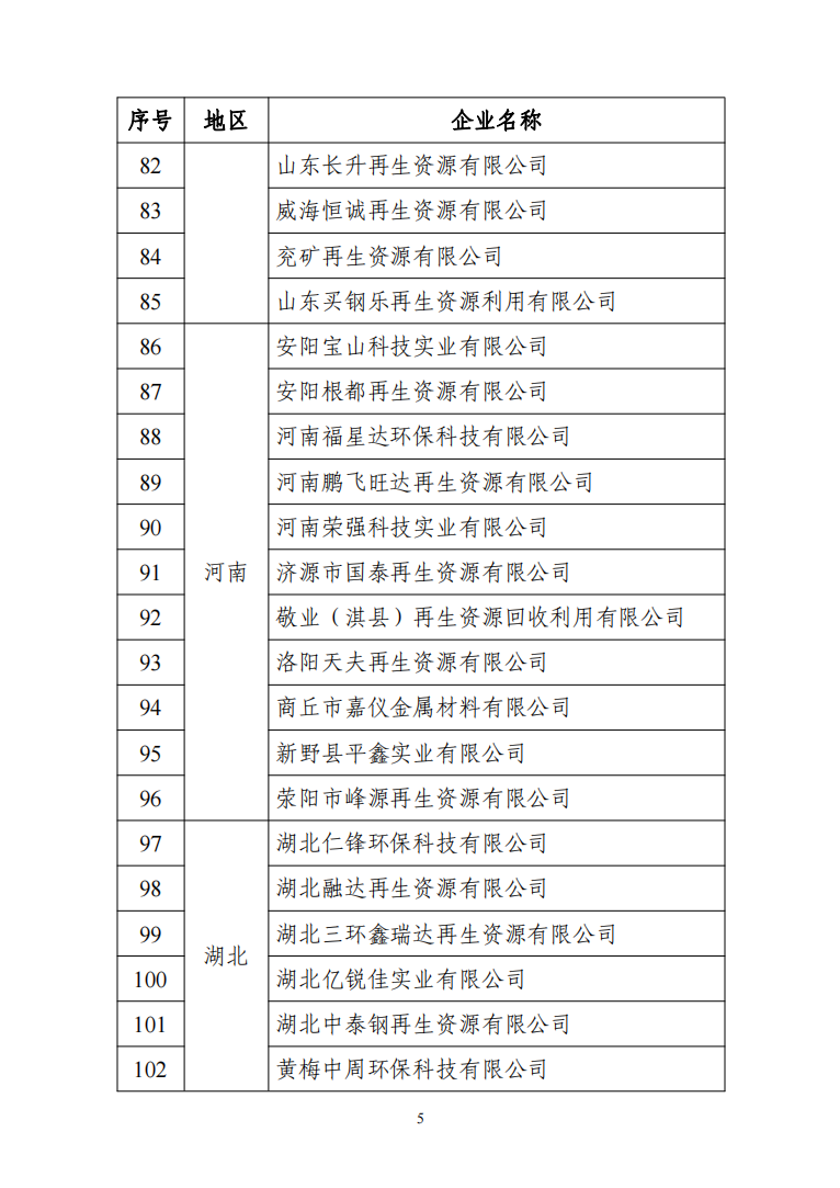5符合《新能源汽车废旧动力蓄电池综合利用行业规范条件》企业名单(第五批)