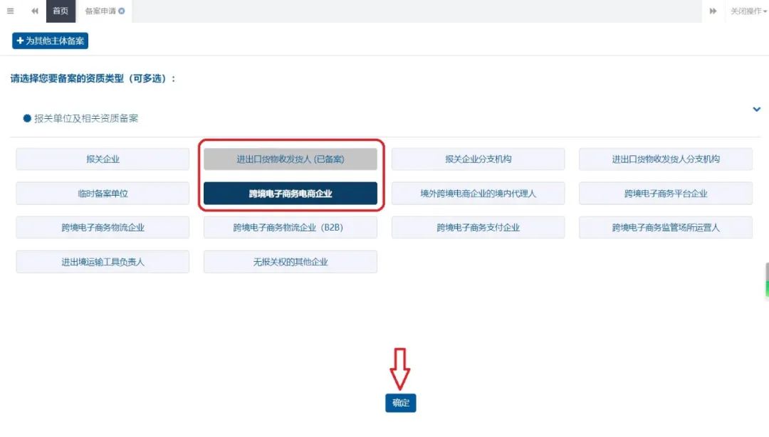 我们企业已经做完进出口货物收发货人备案了,在备案跨境电商资质的时候,发现有好几个类似选项,我应该如何勾选?