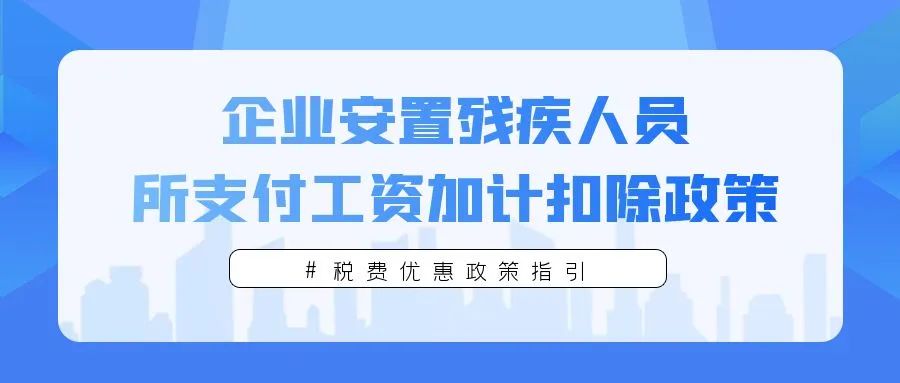 企业安置残疾人员的,在按照支付给残疾职工工资据实扣除的基础上,可以在计算应纳税所得额时按照支付给残疾职工工资的 100%加计扣除。