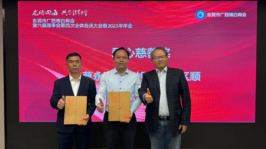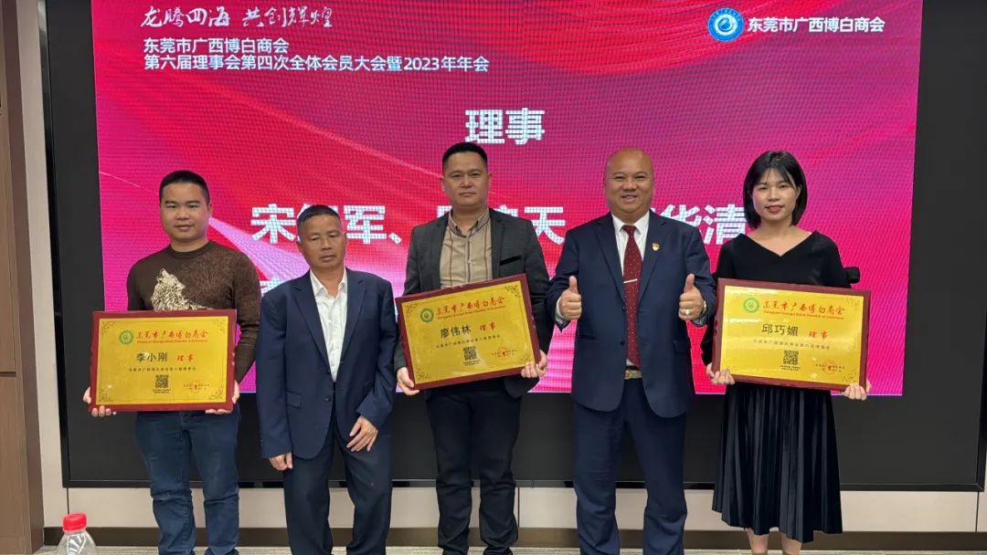 商会执行会长张兴虎、执行会长莫锦均为新进理事成员颁发牌匾