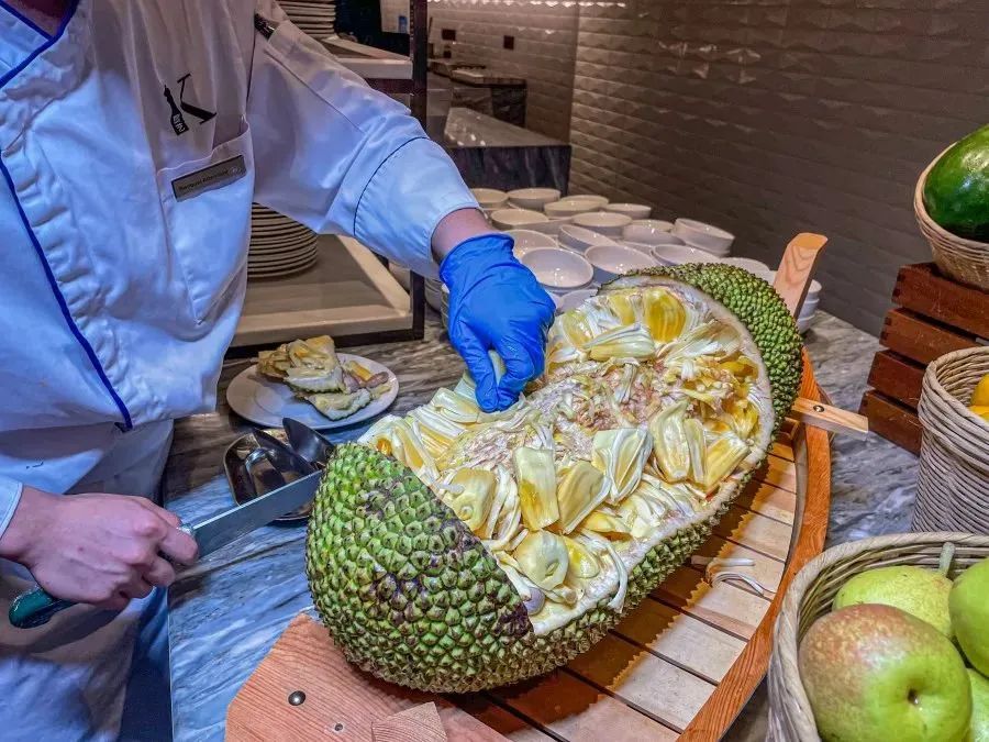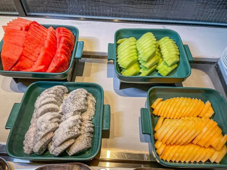 还有果香四溢的新鲜水果等你们来尽享!西瓜、火龙果、哈密瓜.....,都是优质好货。还有品质榴莲蜜等你们享用哦~