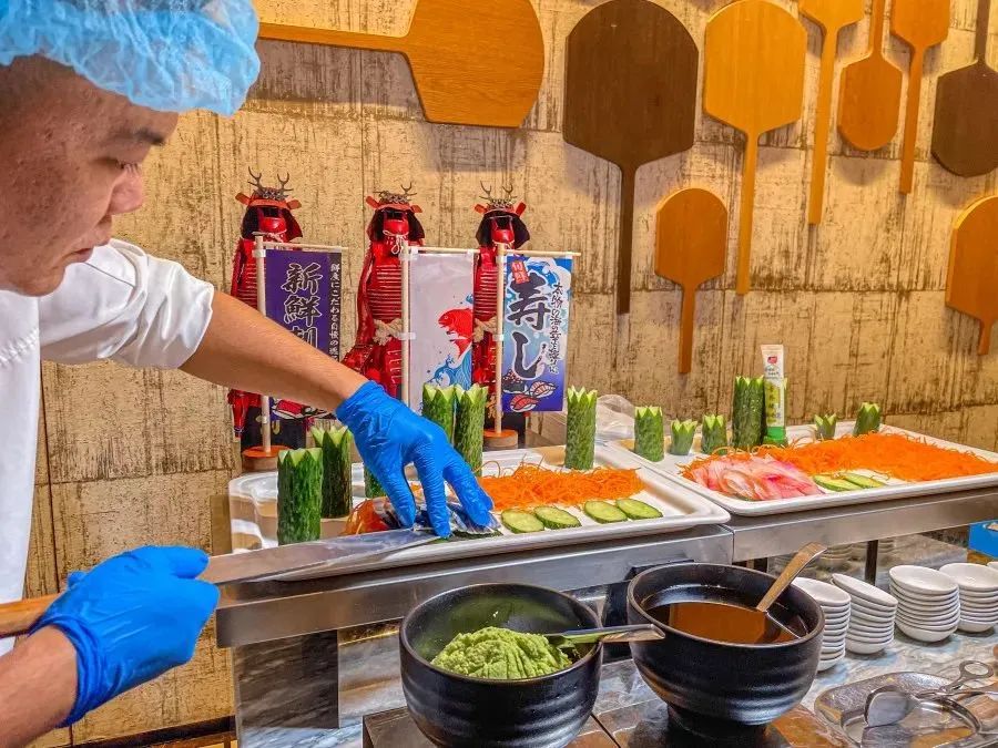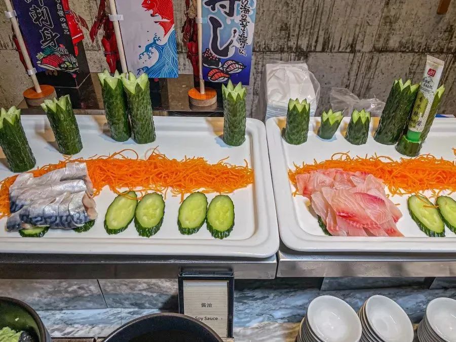 海鲜、刺身、热菜、冷菜甜品等几十种美食畅吃