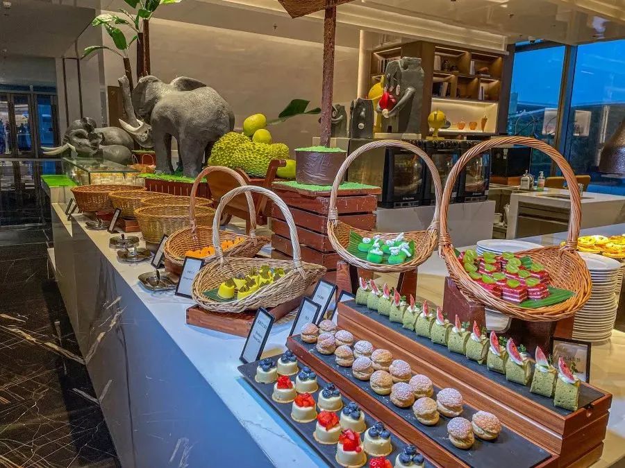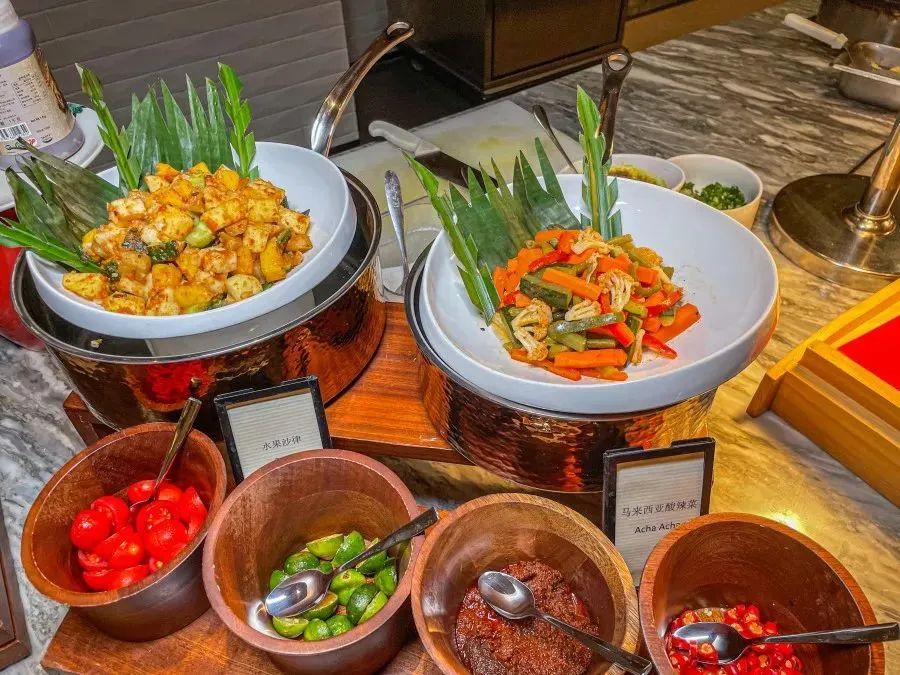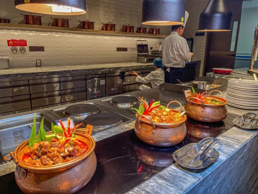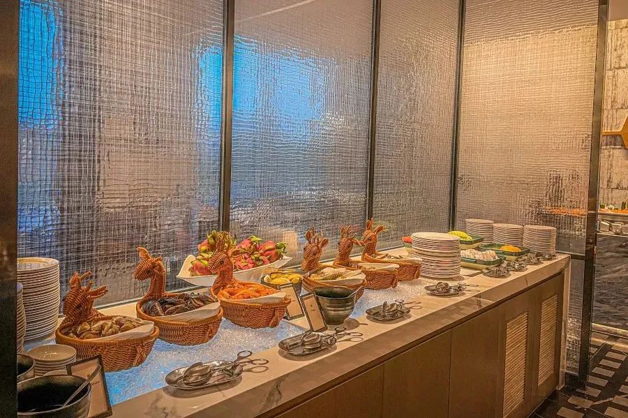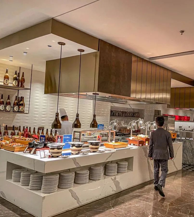 餐厅设计感十足,流动的光影,宽敞的桌面,奢华的用餐环境,在优雅环境里惬意地享用浪漫自助餐。于此用餐,被劳累了一天的味蕾被充分激发,只想大快朵颐,满足味蕾。