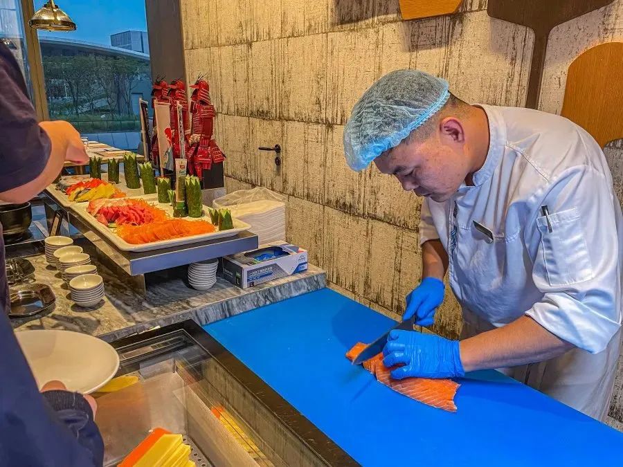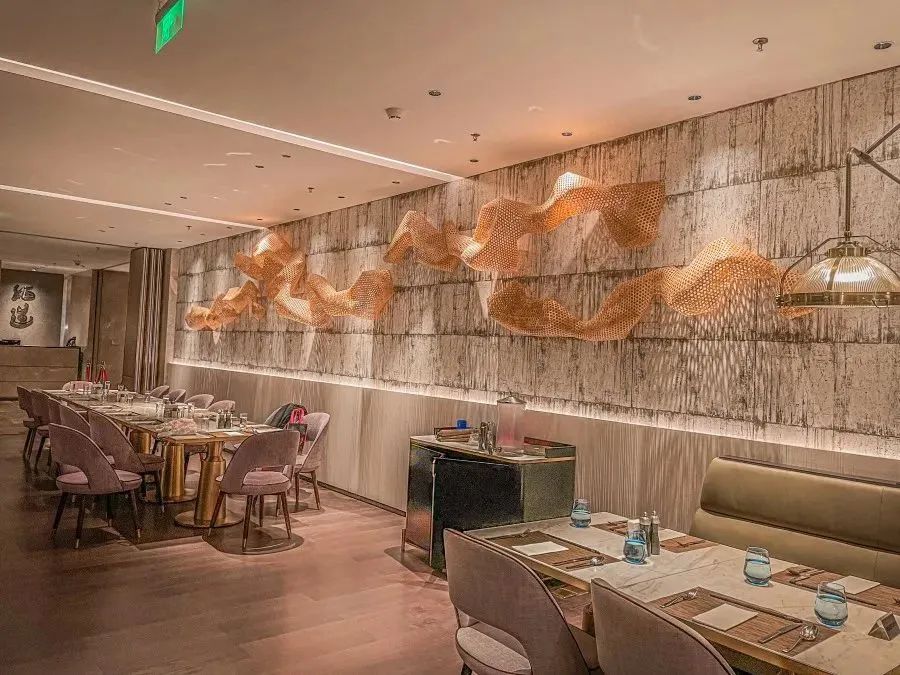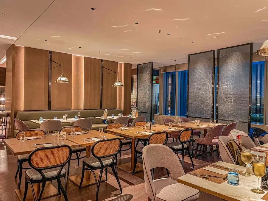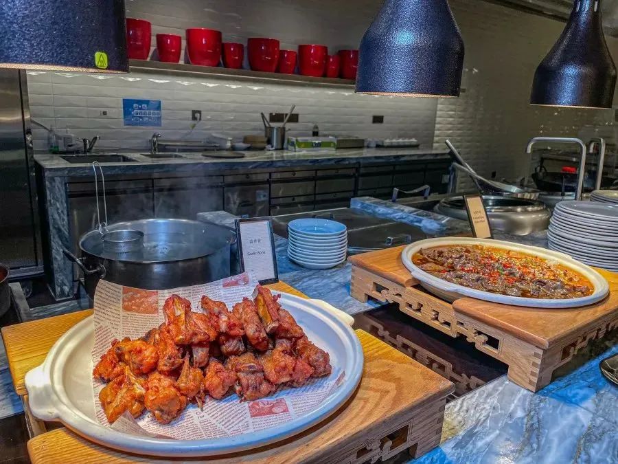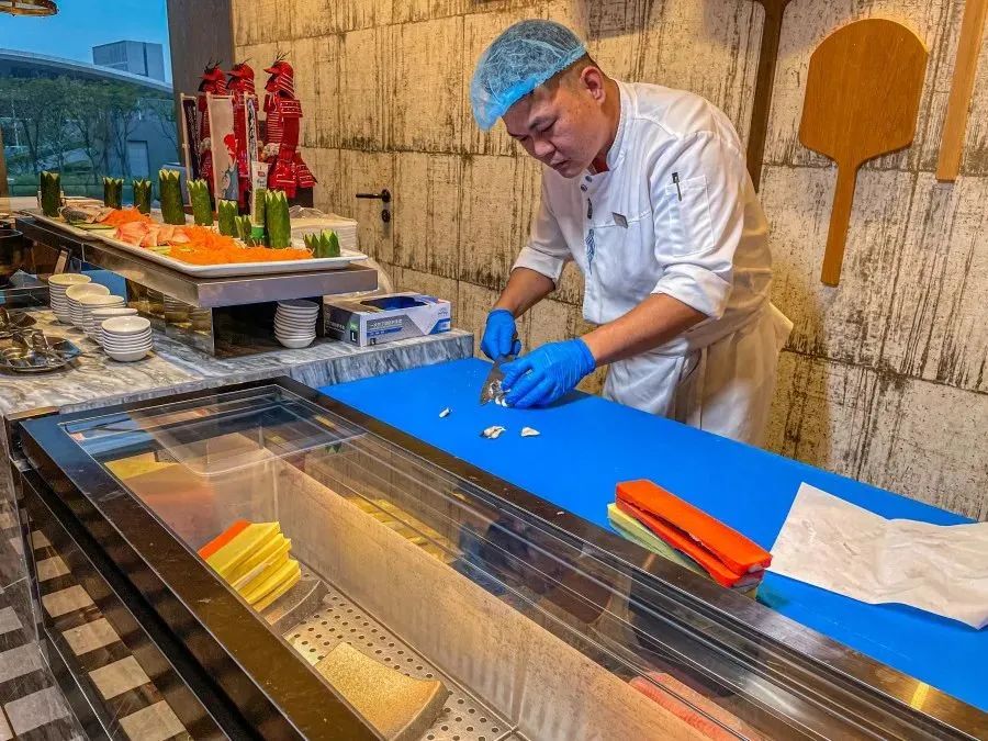 餐厅设计感十足,流动的光影,宽敞的桌面,奢华的用餐环境,在优雅环境里惬意地享用浪漫自助餐。于此用餐,被劳累了一天的味蕾被充分激发,只想大快朵颐,满足味蕾。