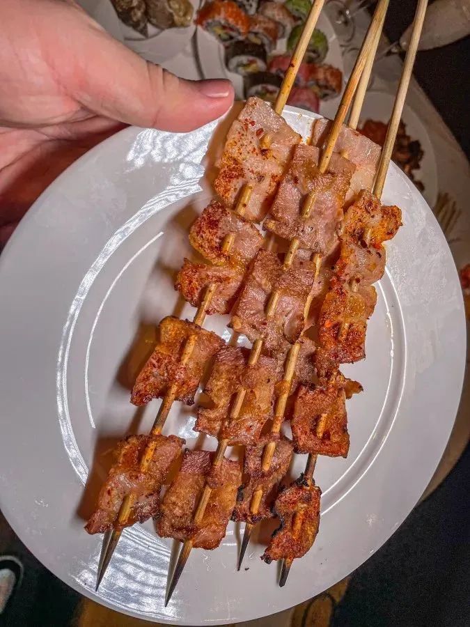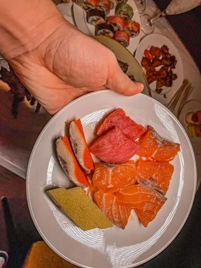 三文鱼、金枪鱼、西零子鱼、鲷鱼...新鲜的食材,色泽艳丽,现场厚切,保证了鱼的鲜度。蘸上酱料,就能感受鲜味本鲜!夹住刺身往蘸碟一滚,大多数食客的味蕾就已经被挑动了。酱料淡淡的清香把刺身的鲜美衬托得更加明显,入口便是满口的新鲜。