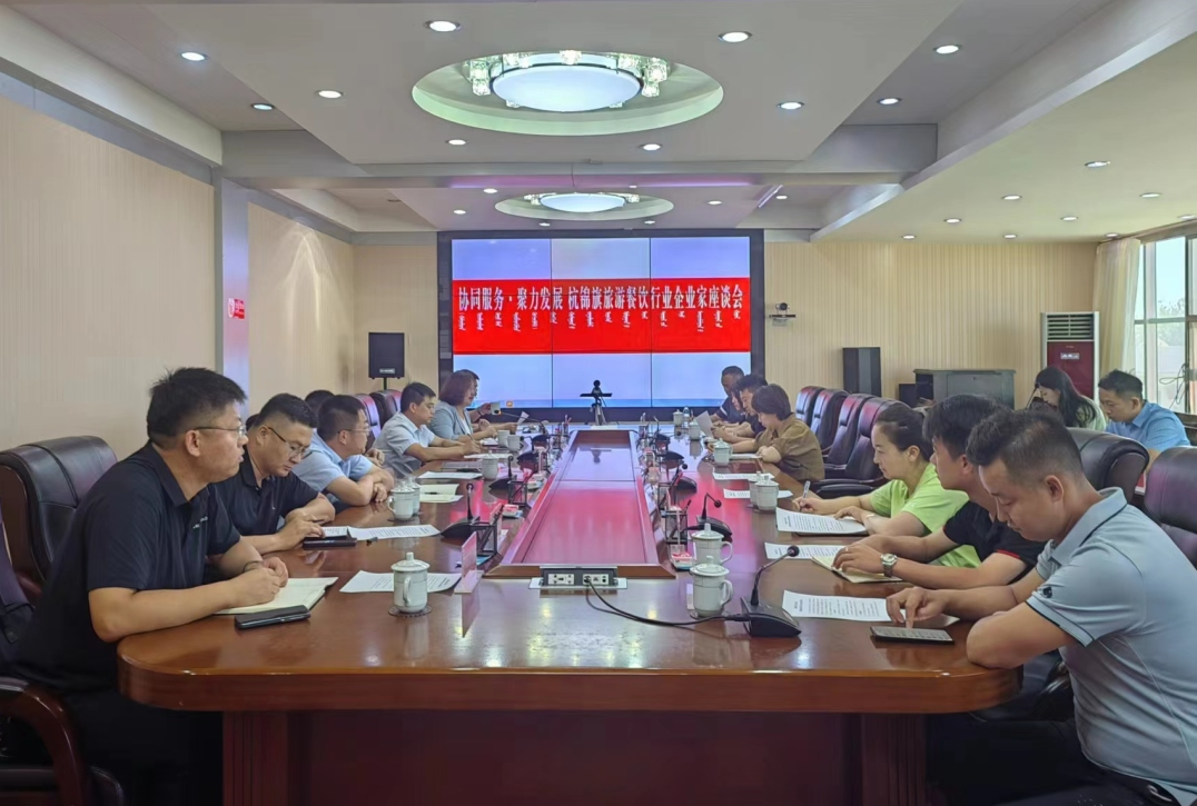 座谈会围绕当前旅游旺季旅游餐饮企业存在的问题、旅游企业与酒店餐饮业之间如何加强引流与合作、以及旅游餐饮企业需要政府相关部门提供哪些精准贴心服务等内容展开,各相关部门从优化营商环境、旅游客源引流、旅游餐饮宣传报道、招工用工、交通、执法等方面给予旅游餐饮企业帮助指导。通过企业与部门之间深入互动交流,促进了合作与沟通、加强了联系和团结,形成了发展合力,助力杭锦旗旅游餐饮行业企业做大做强。