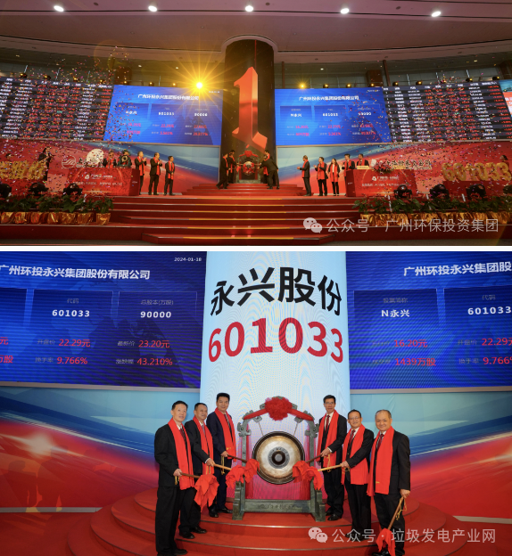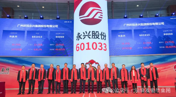 1月18日,广州环投永兴集团股份有限公司(以下简称“永兴股份”)在上海证券交易所主板成功上市,股票代码为601033.SH。永兴股份本次公开发行股票1.50亿股,发行价格16.20元/股,新股募集资金总额24.30亿元,发行后总股本9.00亿股。