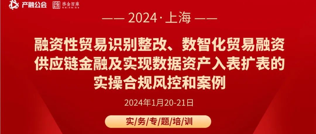 1月20-21日上海 | 融资性贸易识别整改、数智化贸易融资供应链金融及实现数据资产入表扩表的实操合规风控和案例专题培训